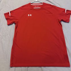 Under Armour Heatgear loose fit red & white short sleeve workout shirt men's XL$10Albany, OR