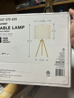 Hampton Bay Quinby 22inch gold Tripod Table Lamp With White Fabric Shade$30Holly Springs, NC