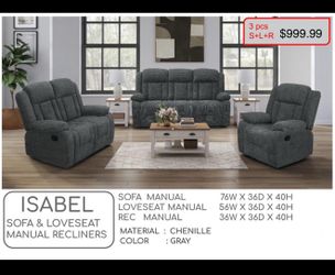 3 Pcs Living Room Manual Recliner Set$1,000Redlands, CA