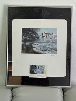 BRIAN SANDERS "D-DAY" LIMITED EDITION HAND SIGNED WITH WORLD WAR 3 Commemorative Stamps LITHOGRAPH FRAMED ONLY 152 of 2,500 Made. $75Hialeah, FL
