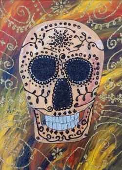Skull Mix Media Orginal Painting Framed Ready To Hang Day Of Dead$275San Antonio, TX