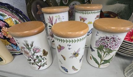 5Pc Ceramic Portmeirion Botanic Garden Canisters. 7"-8" H. PLEASE READ DESCRIPTION $80Delray Beach, FL