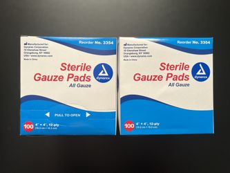 DYNAREX STERILE GAUZE PADS 4” x 4”, 12 PLY (2 PACKS OF 100 - 200 COUNT)$10San Bernardino, CA