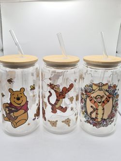 Winnie The Pooh Glass Tumbler 16 Oz Bamboo Lid Glass Straw 2 For 20 For 12$ Each $12Rancho Cucamonga, CA