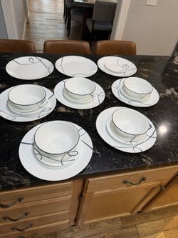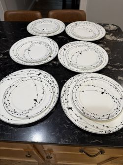 6 Dinnerplate And 6 Salad Plates Of Ciroa Oiseau Fine Bone China White & Silver Birds $110Federal Way, WA