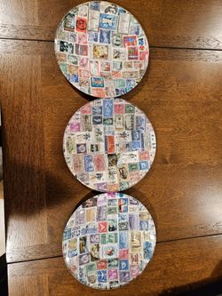 Classic Postage Stamp Decoupage Plates, 8", Backing$30Ontarioville, IL