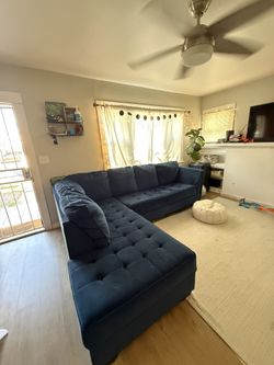Dark Blue Suede Living Spaces Sectional$400San Diego, CA