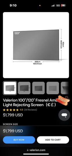120 Inch Fresnel Long Throw Ratio Ambient Light Rejection Screen$1,000Santa Ana, CA
