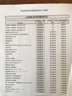FUNERAL PLOT $10,000Waipahu, HI