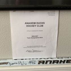 Anaheim Ducks 2006 2007 Team Autographed Stick With Proof Of Authenticity Ertificste$285San Clemente, CA