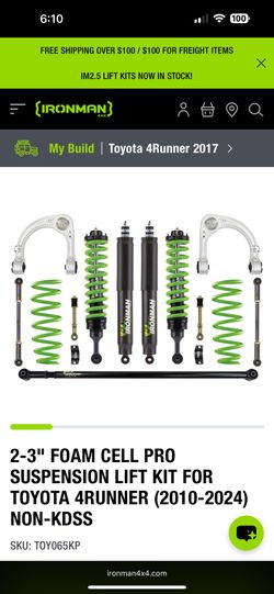Ironman Foam cell stage 3 lift kit 2010-2024 4Runner$1,400Moorpark, CA