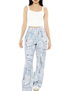 Forever 21 Distressed Denim Print Jeans Pantalones Mujer Womens 25$15Dallas, TX
