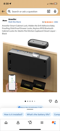 Anweller Smart Cabinet Lock, Hidden No Drill Adhesive Baby Proofing Child Proof Drawer Locks, Keyless RFID Bluetooth Cabinet Locks for Adults File Kit$15Miami, FL