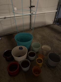 11 Pots And A 42 Inch Tomato Cage $5Hillsboro, OR