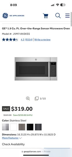 GE Microwave For Sale 1.9 Sf /Barely Used Like New Stainless Steal$150Riverside, CA
