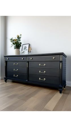 Black Mid Century French Hollywood Glam Long, Eight Drawer Vintage Wood Dresser$895Rancho Cucamonga, California
