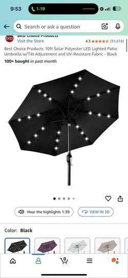 Bear Choice Black Led Solar Light Umbrella 10 Ft $50Rancho Cucamonga, California