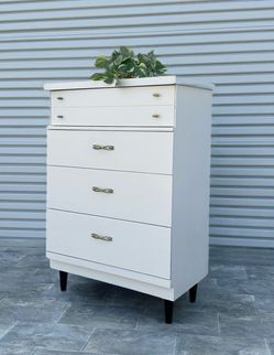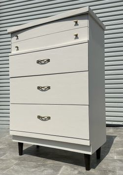 White Cream Brown Mid Century Modern Mcm Tall Chest Of Drawers Dresser Cabinet $395Rancho Cucamonga, California