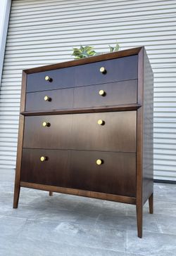 Mid Century Modern Mcm Dark Walnut Restored Tall Chest Of Drawers Dresser $1,200Rancho Cucamonga, California