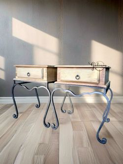 Solid Pine Wood Vintage Wrought Iron Set Of Two Side Tables Night Stand End Tables $400Rancho Cucamonga, California