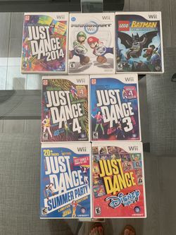 Just dance, Mariokart, Lego Batman Wii games$65Homestead, FL