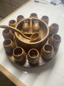 Wooden Hawaiian Style Rotating Punch Bowl with 11 cups, ladle, and salt/pepper shakers$80Corona, CA