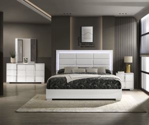 Glossy White 4pc BEDROOM SET With LED light/ Juego De Cuarto Blanco Brillante 🔥$1,899Miramar, FL