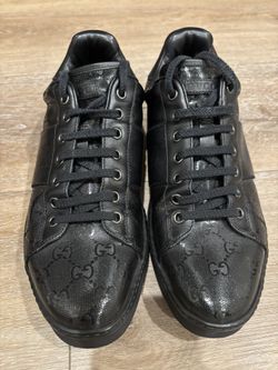 Gucci GG Embossed Leather Sneakers Low Top Lace Up Black Designer Shoes$350Glendora, CA