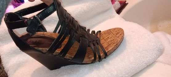 BCBG black leather strappy wedge heel$20San Leandro, CA