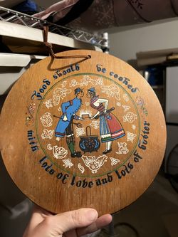 Vintage Enesco Wood Kitchen Plaque Dutch Round Trivet Scandinavia Vintage $20Las Vegas, NV