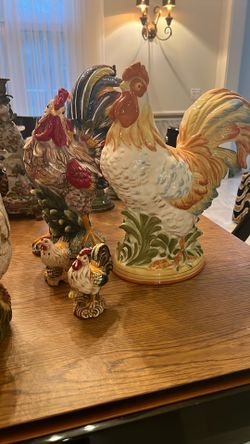 6 Ceramic Roosters, 4 Large And 2 Salt Pepper Shakers$50Boca Raton, FL