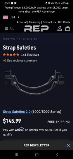 REP Fitness Safety Straps for 3x3 Uprights $60Menifee, CA