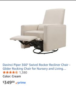 Title: DaVinci Piper 360° Swivel Glider Recliner Chair – Cream $200San Diego, CA