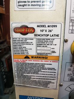 Shop Fox Table Shop Lathe $1,000Montclair, CA