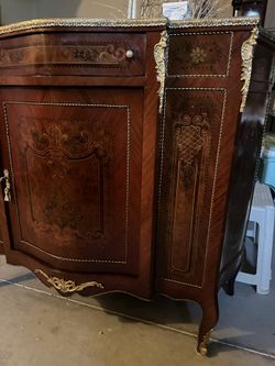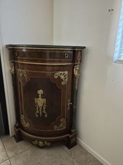 It’s Italian Accent Table With Gold Leaf To Make It Glamorous With Marble On Top and Drawer And two Shelves Can Be Used As TV Stand Or Dining Room Acc$695Alta Loma, CA