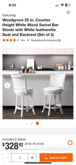 Woodgrove 25 in. Counter Height White Wood Swiv Bar Stools with White leatherette Seat and Backrest (Set of 2) by CorLiving$199San Diego, CA