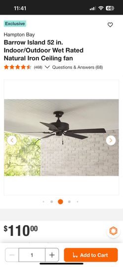 Hampton Bay Barrow Island 52 in. Indoor/Outdoor Wet Rated Natural Iron Ceiling fan$79San Diego, CA