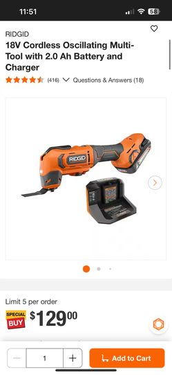 RIDGID 18V Cordless Oscillating Multi-Tool with 2.0 Ah Battery and Charger$85San Diego, CA
