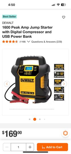 DEWALT 1600 Peak Amp Jump Starter with Digital Compressor and USB Power Bank$110San Diego, CA