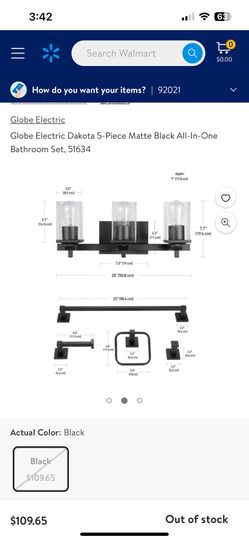 Globe Electric Globe Electric Dakota 5-Piece Matte Black All-In-One Bathroom Set, 51634$70San Diego, CA