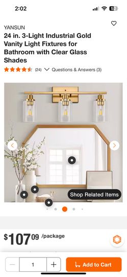 24 in. 3-Light Industrial Gold Vanity Light Fixtures for Bathroom with Clear Glass Shades$55San Diego, CA