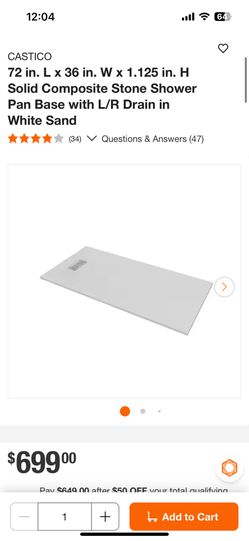 CASTICO 72 in. L x 36 in. W x 1.125 in. H Solid Composite Stone Shower Pan Base with L/R Drain in White Sand$400San Diego, CA