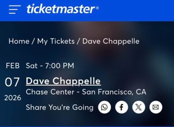 Two Dave Chappelle tickets. February 7 chase center. Section 104 row 8 $700Hayward, CA
