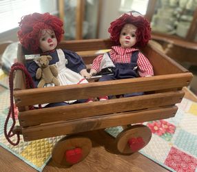 Vintage Raggedy Ann And Andy Porcelain Dolls With Wagon$50Shafter, CA