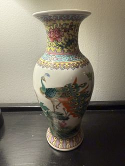 Antique Qing Dynasty Chinese Famille Vase with Exotic Birds And Calligraphy Poem$250Jackson, MI