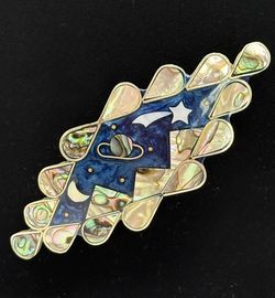 VINTAGE HAIR CLIP Celestial Scene Alpaca Mexican Silver$42Warren, OR
