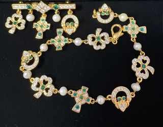 VINTAGE “IRISH BLESSINGS” The Danbury Mint 8” Bracelet and Brooch 11/4” 24k GP$110Warren, OR