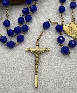 NRI BLUE ACRYLIC BEADED ROSARY NECKLACE Jesus Catholic Religious Jewelry$28Warren, OR