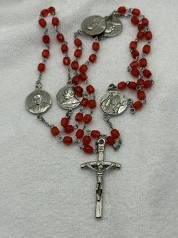 VINTAGE ST POPE JOHN PAUL II Pray For Us RED GLASS BEADED ROSARY Religious 30” + 7”6$35Warren, OR