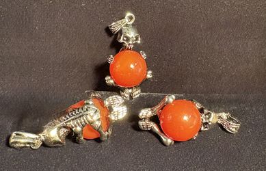 BIG SKELETON PENDANT 16mm Carnelian Sphere 43 X 21mm 3 AVAILABLE $10. EACH All $25.00 $10Warren, OR